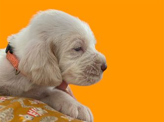 Our puppies include white and orange, white, orange roan, and brown roan. Colors will vary depending on the parent dogs.