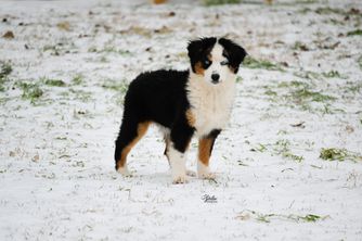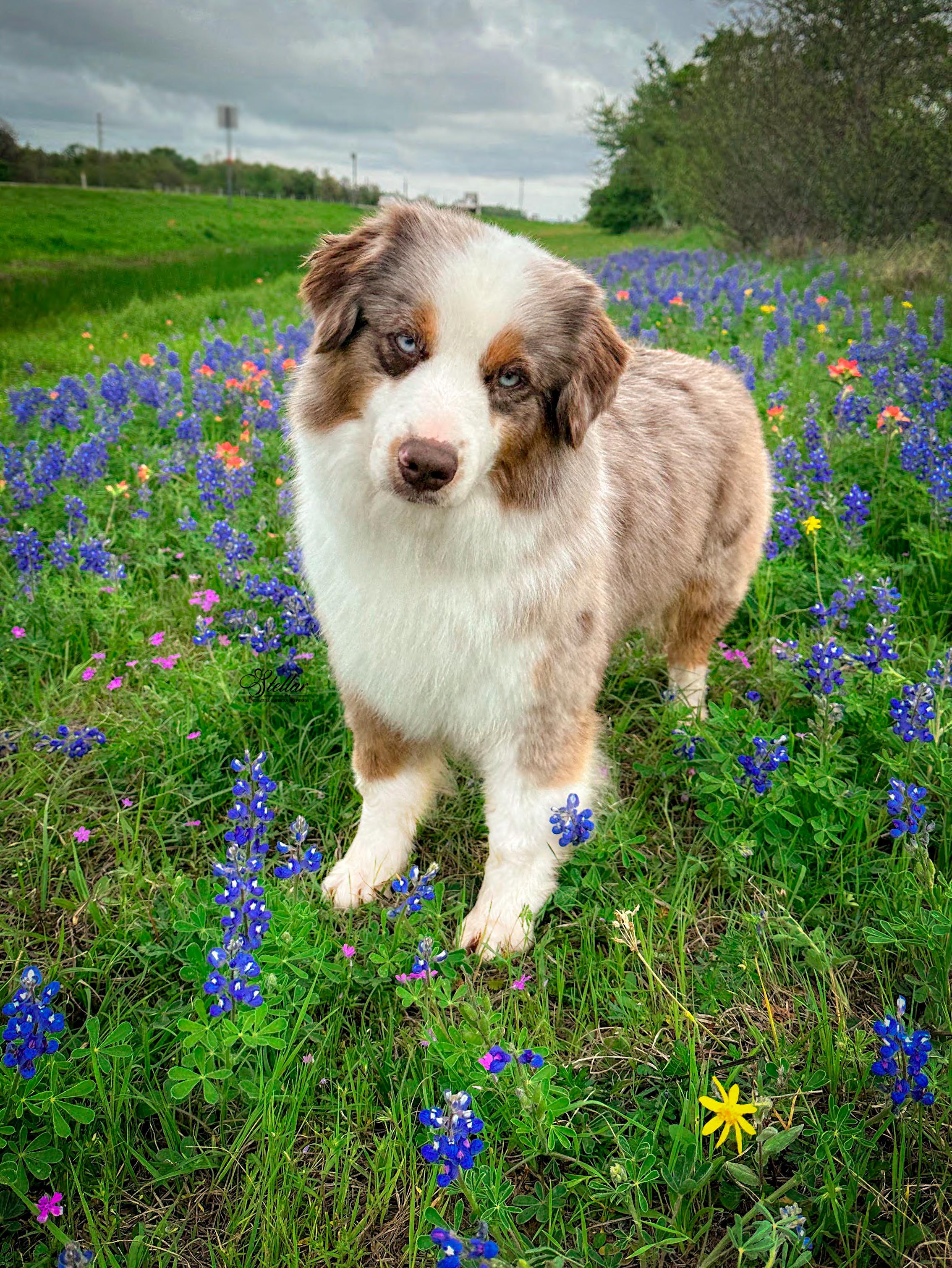 Our puppies include black tri, red tri-color, red merle, and blue merle. Colors will vary depending on the parent dogs.