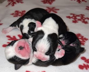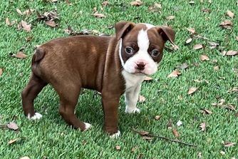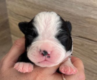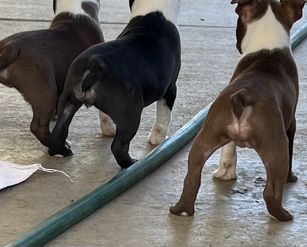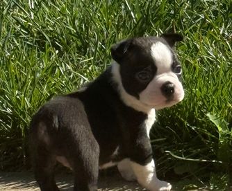 Our puppies include seal brindle and white, seal and white, brindle and white, and black and white. Colors will vary depending on the parent dogs.