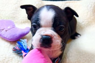 Cooper is a male Boston Terrier almost 2 years old. Carefully selected as a great representative of his breed, Stephanie decided to make him part of their program. Stephanie has passed Good Dog’s screening process, which involved a review of their breeding practices, environment, and the mental and physical health of their dogs.