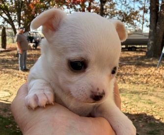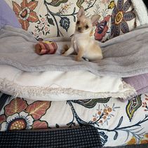 I found Stephanie and her beautiful Chihuahua litter in Feb 2025. The puppies wer only a few days old and I fell in love with one of the boys. We communicated through GoodDog and I found her to be sweet and helpful and very knowledgeable about Chihuahuas. I decided to buy the puppy and named him Agamemnon, aka Nonny. Stephanie and I had video calls so I could see the litter in action and Nonny could hear my voice. When the time came for him to come home to me, Stephanie met me at the Tulsa International Airport, a 45 minute drive for me and twice that for her. I added Nonny to my small pack of 2 other dogs, Antigone (Tigger) a long-haired Chihuahua and Zuzu a terrier mix.