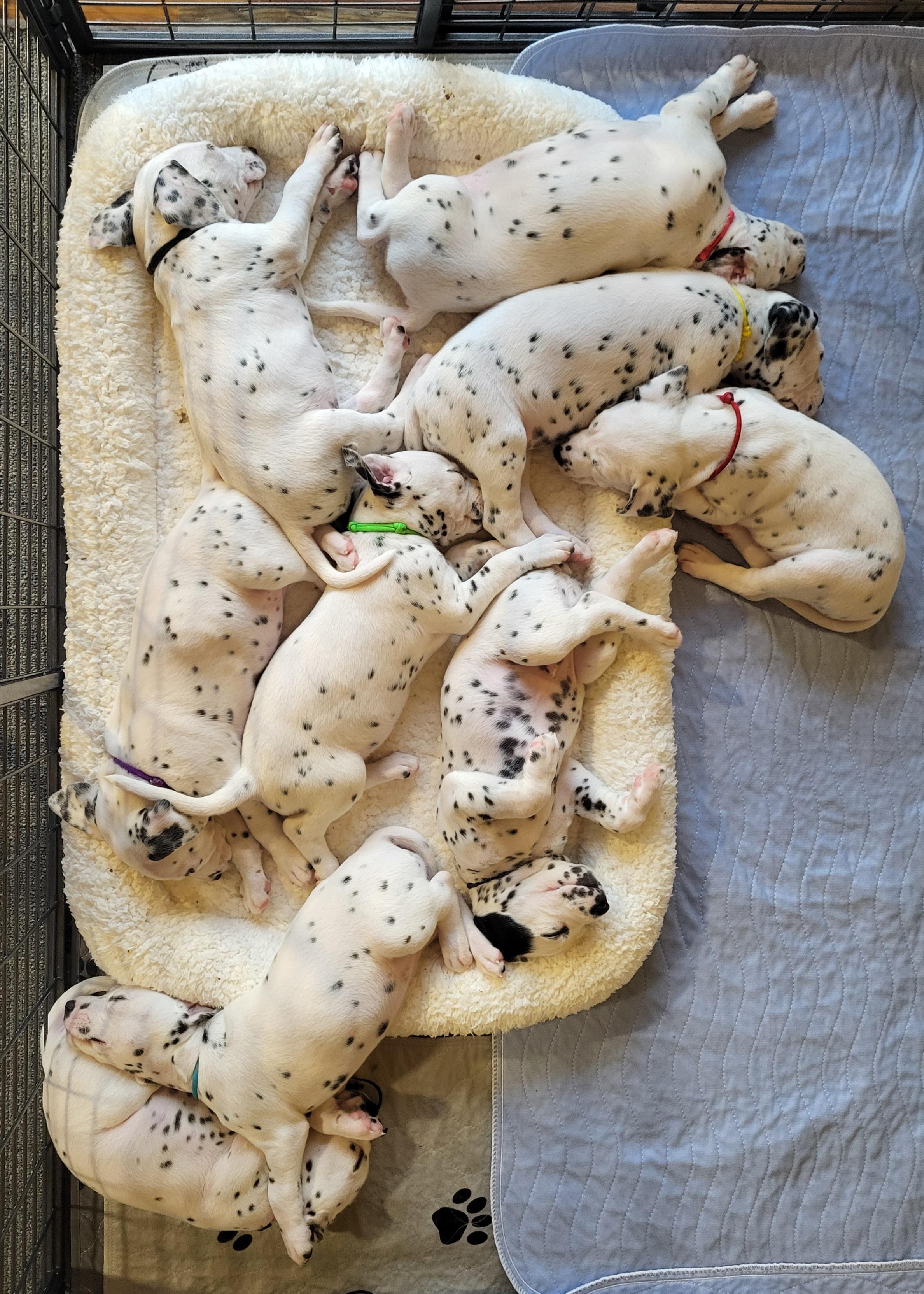 I'm Stephanie B., the breeder behind Stephanie's Dalmatians located in Rockford, MI. As a lifelong Dalmatian lover, I’m proud to offer my very first litter of exceptional Dalmatian puppies. These puppies have been raised in my home with tremendous care and attention, with a strong focus on health, temperament, and socialization. Both parents are beloved family pets, AKC registered, LUA (Low Uric Acid), and have outstanding health credentials including OFA-registered hips, CHIC numbers, BAER (hearing) tested, thyroid tested, and fully genetically screened. With over 30 years of experience in the veterinary field, I’m committed to giving these puppies the very best start in life. They come to work with me daily, where they are exposed to crate training, car rides, new sights, sounds, and lots of hands-on socialization. Each puppy will be: BAER tested Examined by a licensed veterinarian Vaccinated with at least their first set of shots Microchipped Dewormed appropriately These puppies have truly taken over our home and hearts—they are deeply loved and are being raised to become healthy, confident, and affectionate companions. If you're looking for a top-quality Dalmatian with a loving start and excellent genetics, these puppies could be the perfect addition to your family.