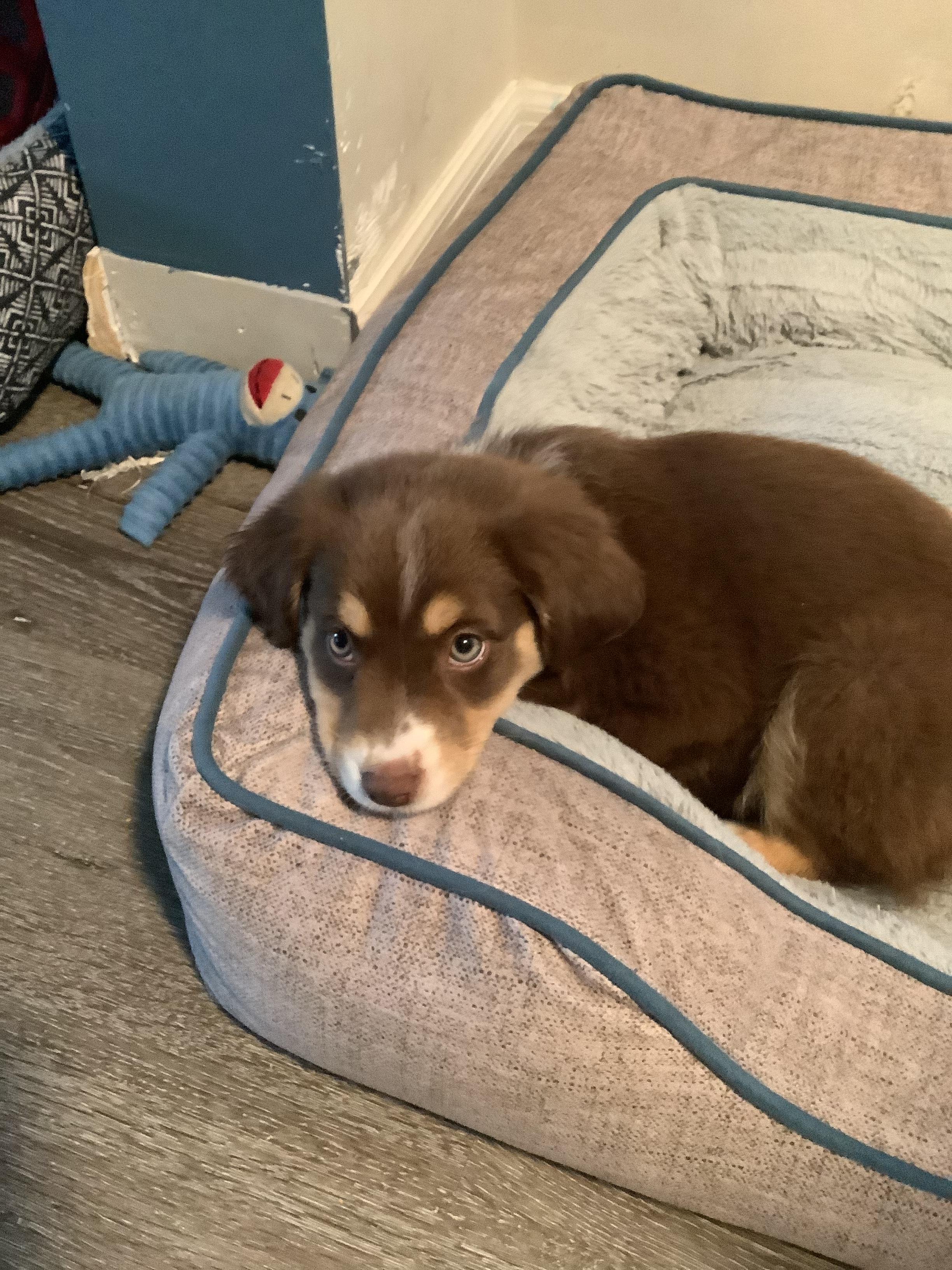 Crash is a male Miniature Australian Shepherd. Carefully selected as a great representative of his breed, Stephanie decided to make him part of their program. Stephanie has passed Good Dog’s screening process, which involved a review of their breeding practices, environment, and the mental and physical health of their dogs.