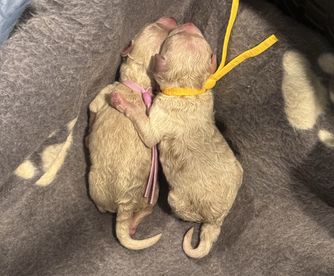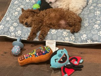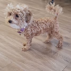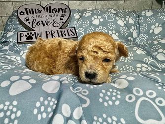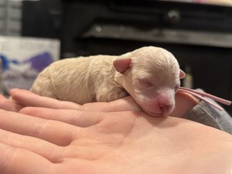 Working with Stephanie was so easy. She is very thorough - welcomed my questions, shared update pics, and was clear about what to expect. The entire process was unique in that I even got a birth certificate complete with tiny paw prints! Pickup day went smoothly. Vaccination/deworming records were organized and the vet praised Bhaggi’s condition and temperament. Communication stayed open and supportive even after pick up - she's helped me in so many ways. My puppy is very social (he gives kisses to everyone), curious, and settling in beautifully. I’m grateful I found Stephanie’s Signature Poodles inspired by Sherry Lynn LLC through Good Dog and would purchase from her again - without hesitation.