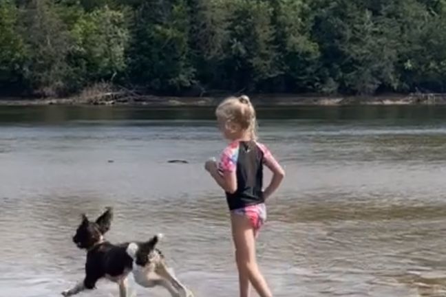 Luna is smart with a great temperament and strong drive. She is gentle natured and is the best family dog we have ever owned. She waits for the kids to get off the bus every day and loves jumping off the dock with them in the summer. She even rides with them on the tube behind the boat. Hips have been checked.
