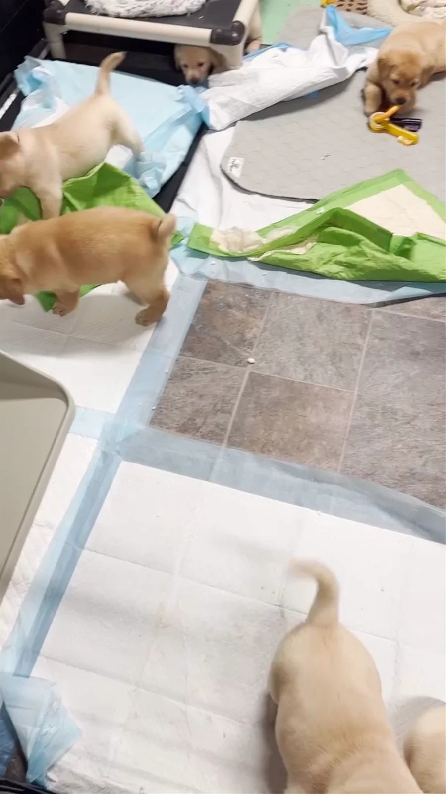Our Border Collie puppies are black. Labrador Retriever puppies include black and yellow. Colors will vary depending on the parent dogs.