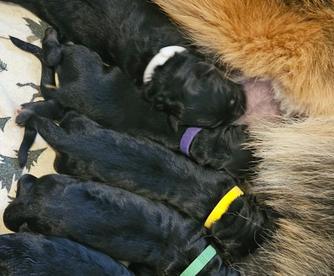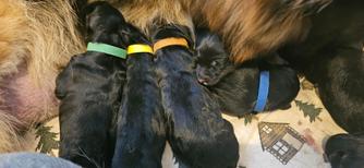 Our puppies include black and black and red. Colors will vary depending on the parent dogs.