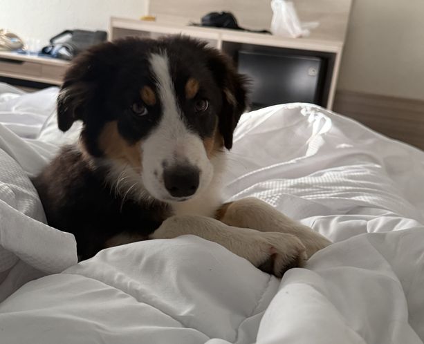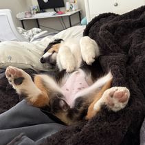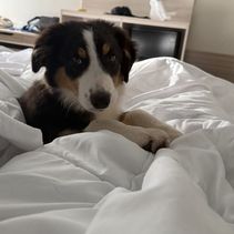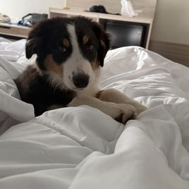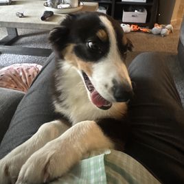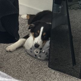 Harper is a beautiful Blue Merle female. Harper is more than just a dog she is my soul dog! She is always by my side and loves car rides, playing fetch, and running around outside! She also loves to nap with her favorite toy and chill inside in front of her fan!!