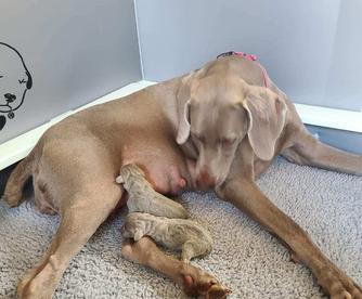 Winnie is a female Weimaraner. Carefully selected as a great representative of her breed, Debra decided to make her part of their program. Debra has passed Good Dog’s screening process, which involved a review of their breeding practices, environment, and the mental and physical health of their dogs.