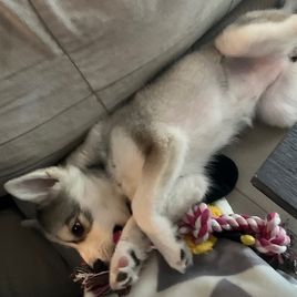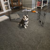 We couldn't be happier with the experience. We had been researching Pomskies for quite a while and stumbled on Sterling Pomskies through GoodDog.com. Pomskies are a fairly new and unique breed, so we appreciated the screening process of both GoodDog and Sterling. Once we connected with Tami, she FaceTimed us and responded by text multiple times with all of the questions we had. It was obvious that she loves her puppies and wants to make sure they go to a good home. Fortunately, she was only about 6 hours away and she was gracious enough to drive our direction to meet up for delivery close to 1/2 way. She provided a packet of everything we needed: food, toys, his blanky, and informational handouts. We have continued to stay in touch, sending her updates and joining a Facebook Group of our buddy's siblings. We took our buddy to his first Vet visit and received a great bill of health. He is healthy as can be and just perfect. At only 8 weeks old, Tami had already taught him to pee on a pad inside and he knows that he can go outside when his feet are on the grass. If I could give more than 5 stars I would, honestly.