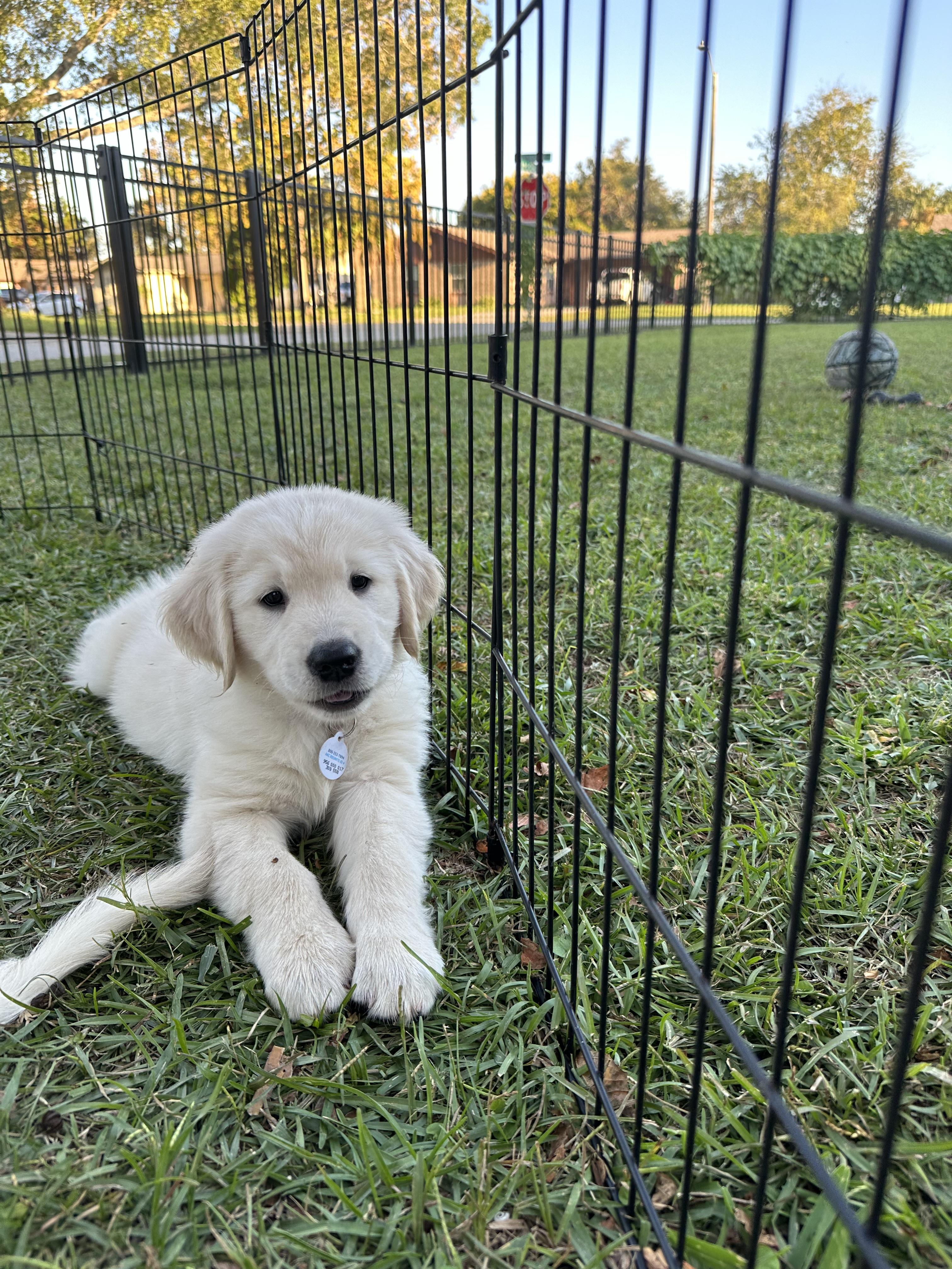 When searching for a golden retriever puppy I did an extensive amount of research. There are a lot of breeders out there masquerading as legit breeders with gorgeous websites who really are basically prolific backyard breeders rolling out multiple litters each year without appropriate health clearances. Jen of Sterling Retrievers is not among those. She is an excellent breeder. She check marks off all the boxes on paper, and in person she is highly professional and personable. Jen has all appropriate health clearances for her dogs. You can look up the dogs on the OFA website (https://ofa.org/) for yourself and see their hip and elbow clearances - listed as “good”. She also has appropriate cardiac and ophthalmic clearances, but at the time of this posting those have not yet been uploaded. (From my research, OFA seems to have a reputation for being slow to get records published.) Jen has placed a high emphasis on early socialization and exposure training. You can see from her facebook posts the level of effort she puts in to making the puppies feel safe and loved from an early age. The night time red lights, exposure to other animals like cats and dogs, vacuum cleaners, T.V. noises, music, ect…. Early desensitization and socialization prevents so so soooo many reactivity and behavioral problems further down the road. When you read through her website and facebook page you get a sense of who her dogs are. Hugo, sire of current Pinocchio litter, is a field golden who has the “heart of a Gryffindor” and loves to play fetch. Nellie, dam of current Pinocchio litter, an English cream, is described as a bit mischievous like a “Slytherin.” There is also a video I love on Facebook of Nellie being smart enough to open a baby gate and let out her puppies in the early morning hours. I knew Jen’s dogs would breed puppies with intelligence and personality and our puppy has not disappointed (: The puppy we picked out was the “orange collar.” So far I can say that he is loving, playful, courageous, and mischievous. On going to pick out a puppy I was able to meet both of the parents - very sweet, gentle, and friendly dogs. Jen also helped provide guidance on which puppy to choose based off our family needs and lifestyle. Sterling Retrievers breeds beautiful Goldens inside and out. Thank you Sterling Retrievers for giving us our gorgeous Duncan.