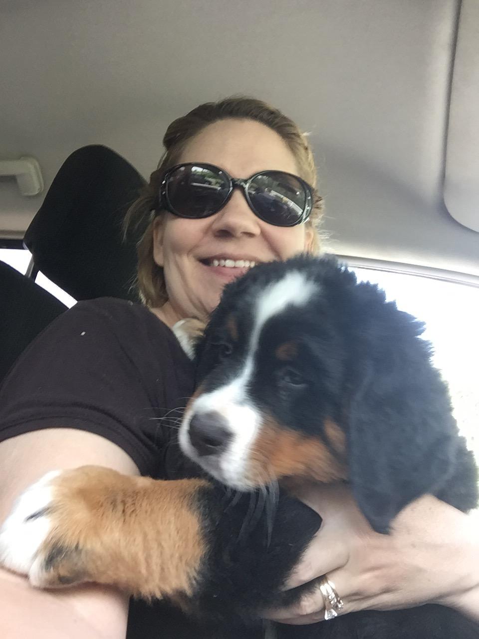 Georgie is a female Bernese Mountain Dog. Carefully selected as a great representative of her breed, Kimberly decided to make her part of their program. Kimberly has passed Good Dog’s screening process, which involved a review of their breeding practices, environment, and the mental and physical health of their dogs.