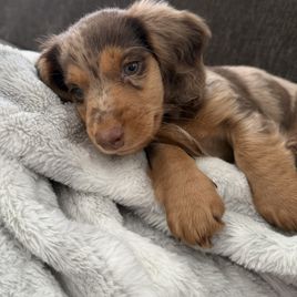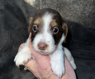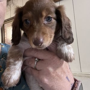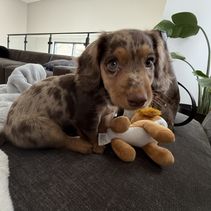 Tiffany was amazing and communicative from day one! She answered our millions of questions before we made the big decision of getting a puppy. She explained everything you could possibly think of, from what to feed your pup, to what treats to use for training, and what vaccinations to get. She sent us regular updates and pictures of our puppy before our pick up date. Pick up was smooth and she accommodated me and my work schedule. She made it clear she was always available if we had any questions or concerns. We just got our boy, Chili, and we're already thinking of getting a second dachshund from her!! We love our puppy and she made this whole process as easy as possible for us!