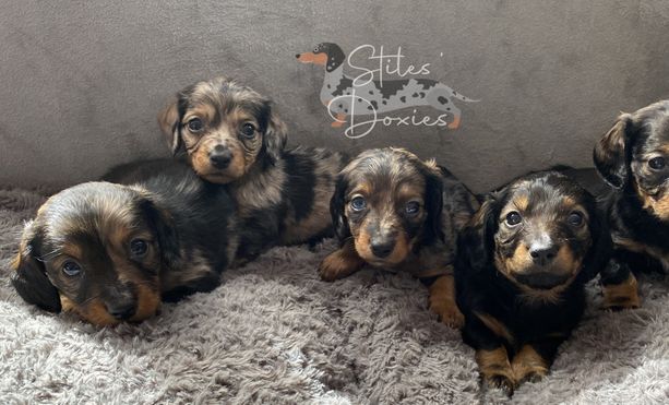 I googled dog breeders in Show Low and Stiles Mini Doxies came up. We have a daschund. She was a rescue. And decided to find a daschund puppy. So, our search began. I saw that Stiles Mini Doxies had litters coming soon. I am so glad I followed through and submitted an application. We picked up Fiona a few days ago. It was love at first sight! Tiffany was very easy to work with. She is a true pro! She does so much to help you prior to you receiving your new baby. Answered all of my questions. Fiona is fitting right in with our family. Thank you, Tiffany for your time, expertise, and love for Doxies!! We are over the moon!!
