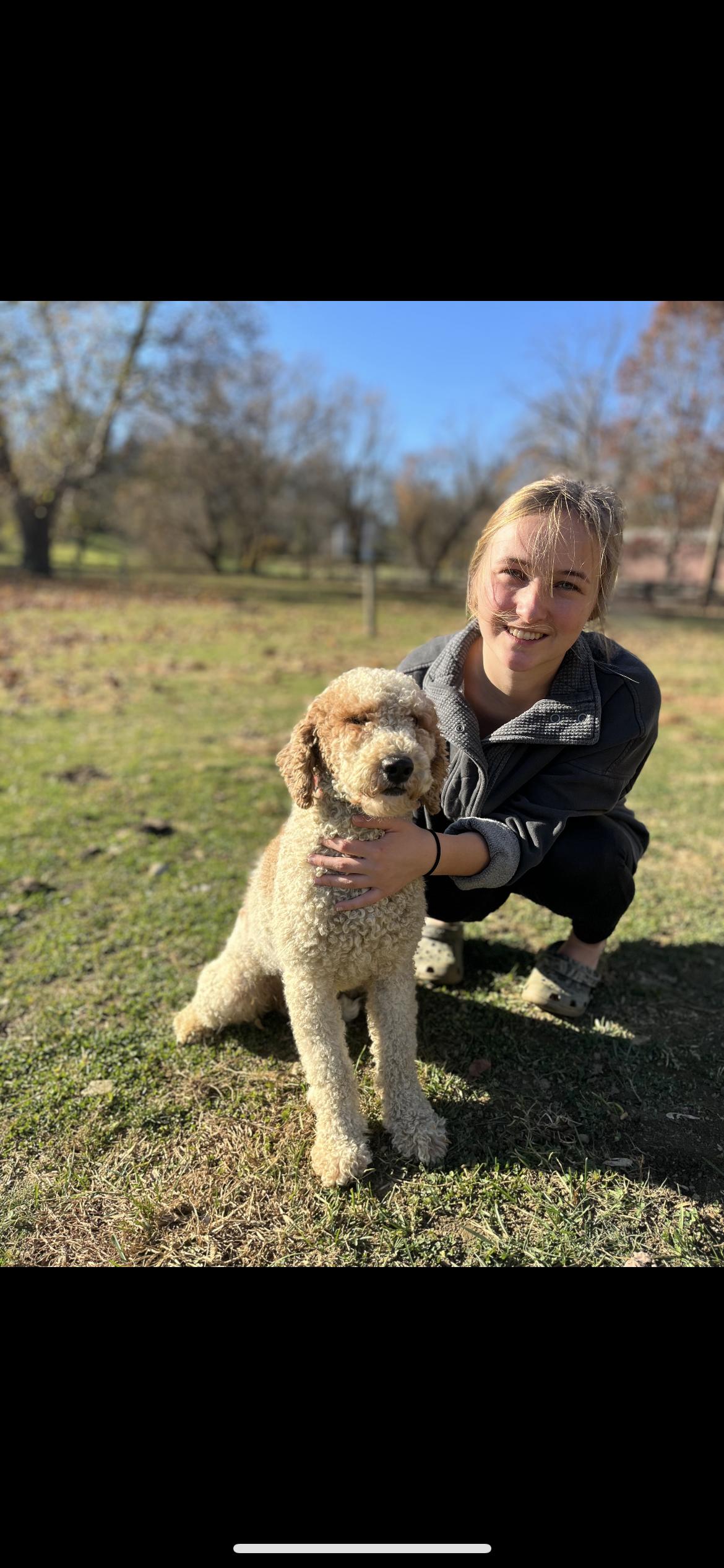 Clementine is a female Goldendoodle. Carefully selected as a great representative of her breed, Jo decided to make her part of their program. Jo has passed Good Dog’s screening process, which involved a review of their breeding practices, environment, and the mental and physical health of their dogs.