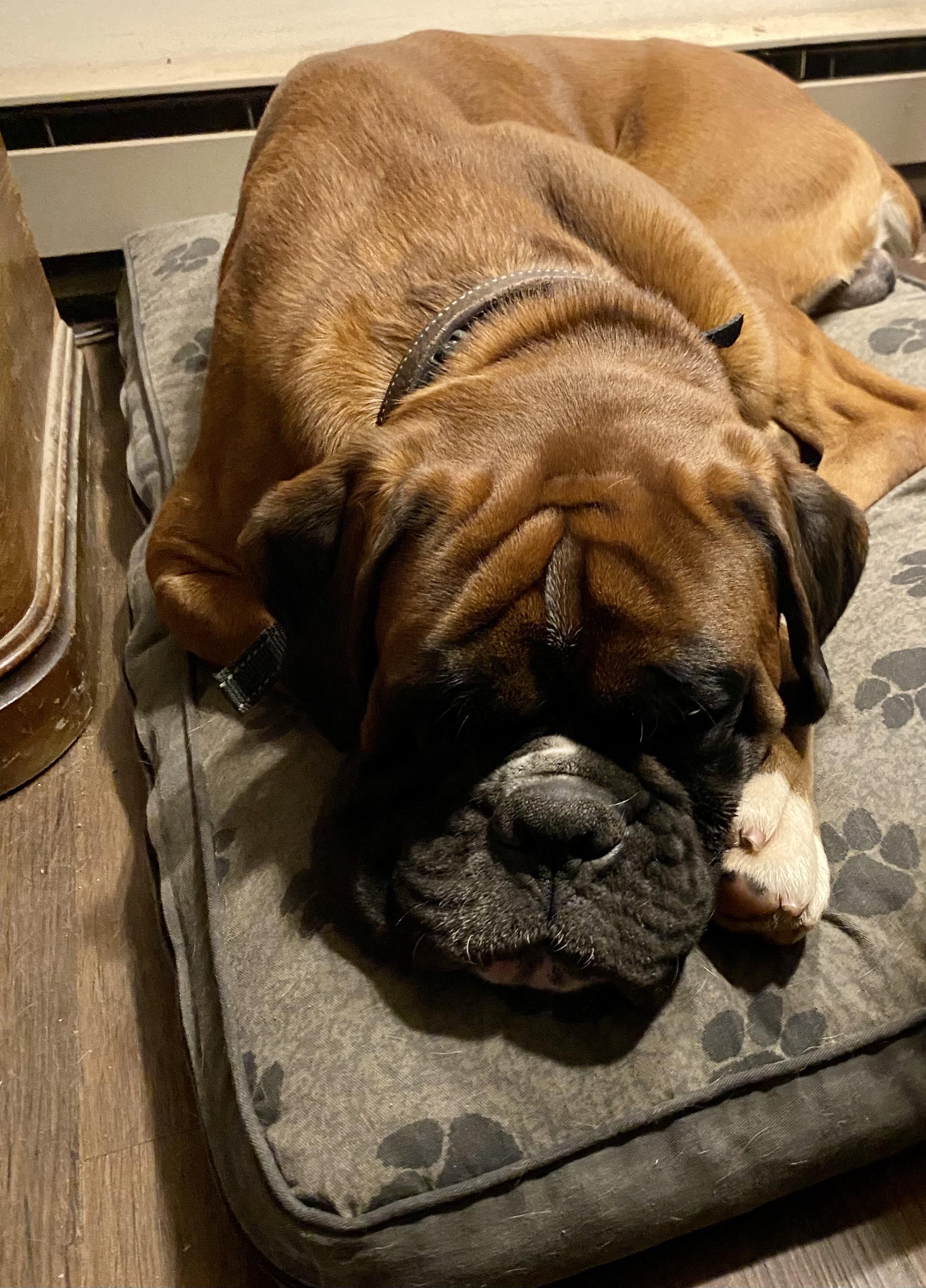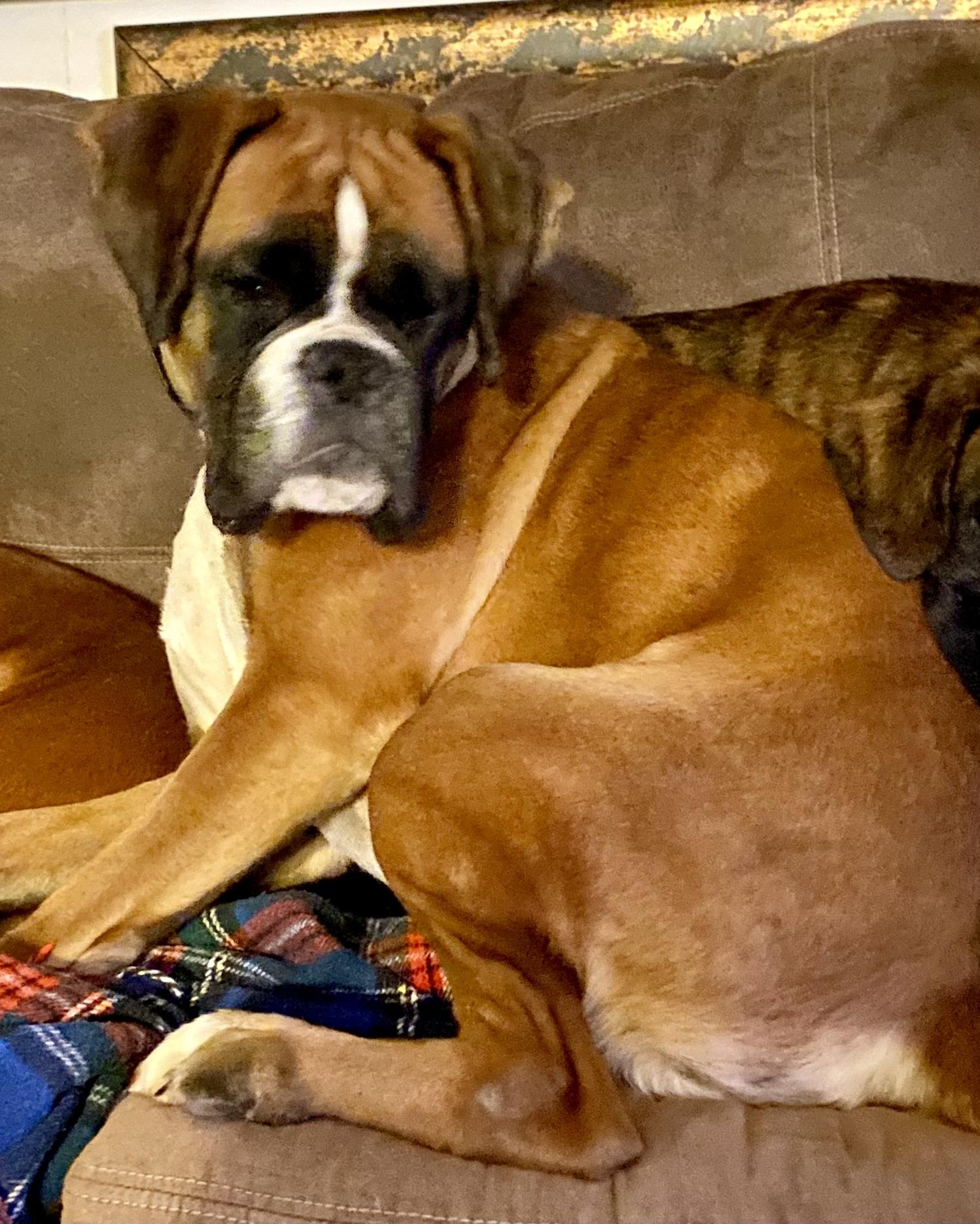 Boogie is a male Boxer. Carefully selected as a great representative of his breed, Kent decided to make him part of their program. Kent has passed Good Dog’s screening process, which involved a review of their breeding practices, environment, and the mental and physical health of their dogs.