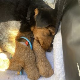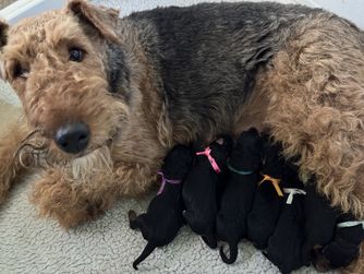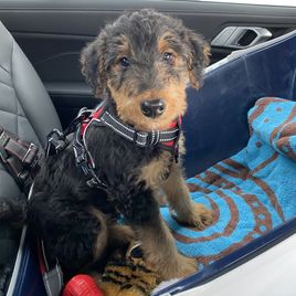 Everything about Stillwaters Airedales gave us confidence that this was the right place to get our first Airedale. Sherri spent time understanding our needs and home life as well as expectations for her puppies. I have the greatest respect for her process and her extensive breeding experience. At pick up she was organized and gave us all the information for caring for our puppy. She is very thorough and Wyatt is the perfect choice for us. I highly recommend Stillwaters Airedales.