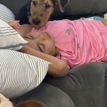 As you can see in the photo Marley has integrated very well into our family. She is gentle yet spunky. She makes us laugh with her antics. Stillwater airedales gave us a great experience and more information than we have ever gotten from a breeder and Marley is our 6th Airedale. Thank you Stillwaters Airedales for your time and attention and most of all for our pup, Marley!
