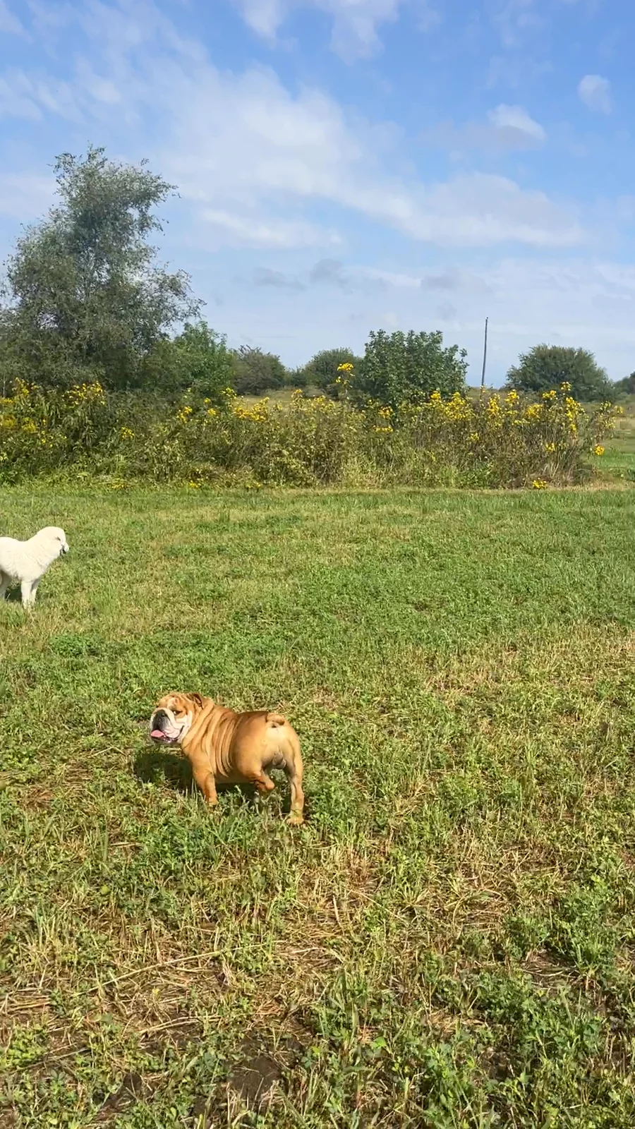 We had our pups out exploring all kinds of new smells this evening. It’s fun having the bulldogs interact with our kids and barn animals. Quite the life they have on the farm.