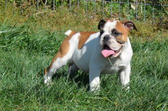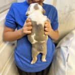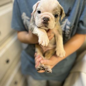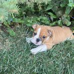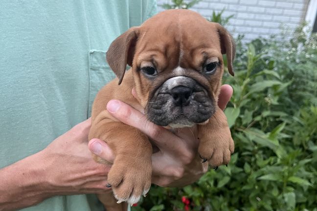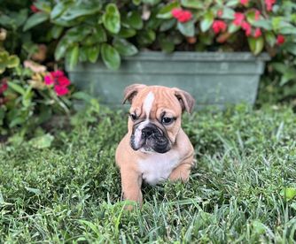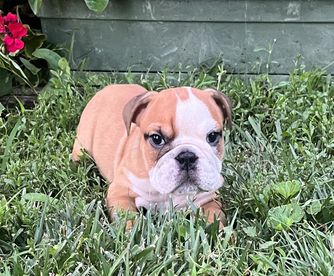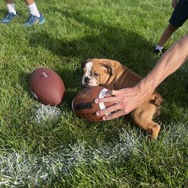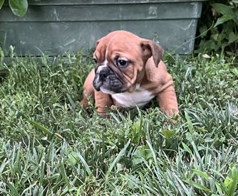 We had an excellent experience getting our puppy from Jordan! Our "Waffles" is such a joy to our family and is fitting in very well. I had a friend, that breeds frenchies, tell me she was a great looking bulldog-great body and confirmation! We are so happy with her. She is exactly what we were looking for and after looking st several breeders, im really happy I chose to get my puppy from Jordan! Thank you for this beautiful gift for our family!