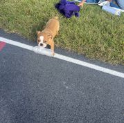 It’s football season! We spend a lot of our time on the field during this time of the year and this cute pup got to tag along. He was on his way to his new home, and got the experience of lots of kids and action. We introduced him to a football but quickly found out he was more interested in a water bottle. He is now in his new home and from the sounds of it, doing amazing!