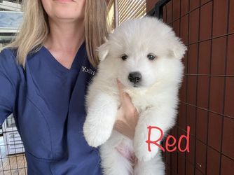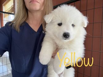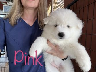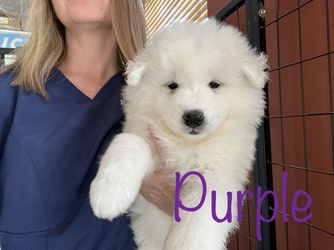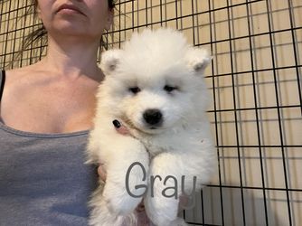 Prince is a male Samoyed. Carefully selected as a great representative of his breed, Kelly decided to make him part of their program. Kelly has passed Good Dog’s screening process, which involved a review of their breeding practices, environment, and the mental and physical health of their dogs.