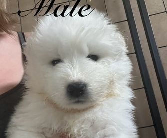 I'm Kelly T., the breeder behind Stirling Silver Samoyeds located in Lorain, OH. It’s important to us that we continue to improve our program and share our knowledge with our buyer families. We want to better the breed through thorough health testing and selective breeding decisions.
