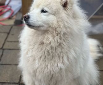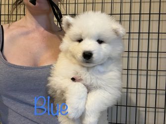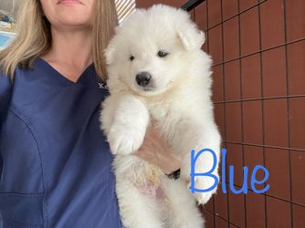 Blu is a male Samoyed. Carefully selected as a great representative of his breed, Kelly decided to make him part of their program. Kelly has passed Good Dog’s screening process, which involved a review of their breeding practices, environment, and the mental and physical health of their dogs.