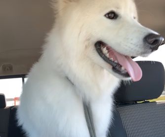 Zero is a male Samoyed. Carefully selected as a great representative of his breed, Kelly decided to make him part of their program. Kelly has passed Good Dog’s screening process, which involved a review of their breeding practices, environment, and the mental and physical health of their dogs.
