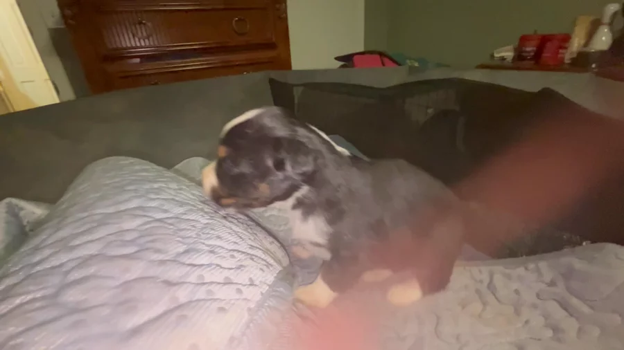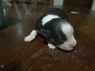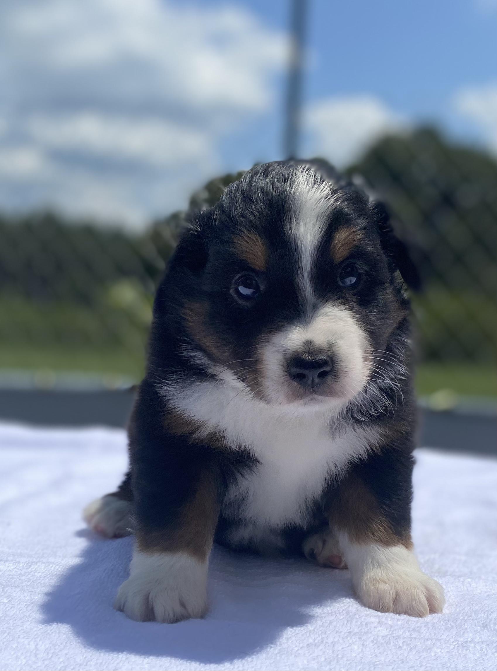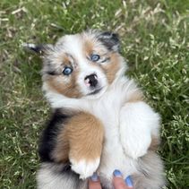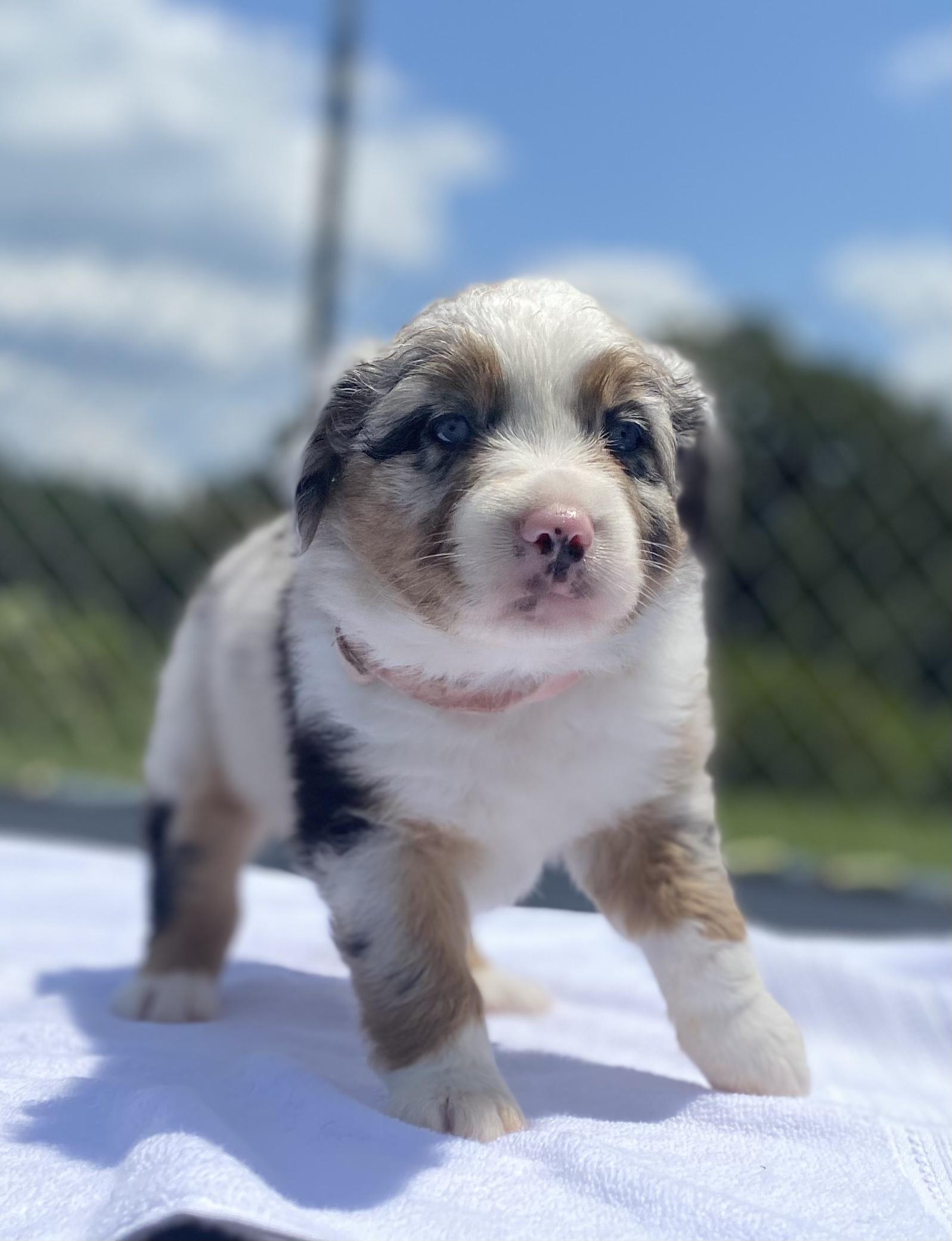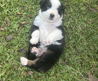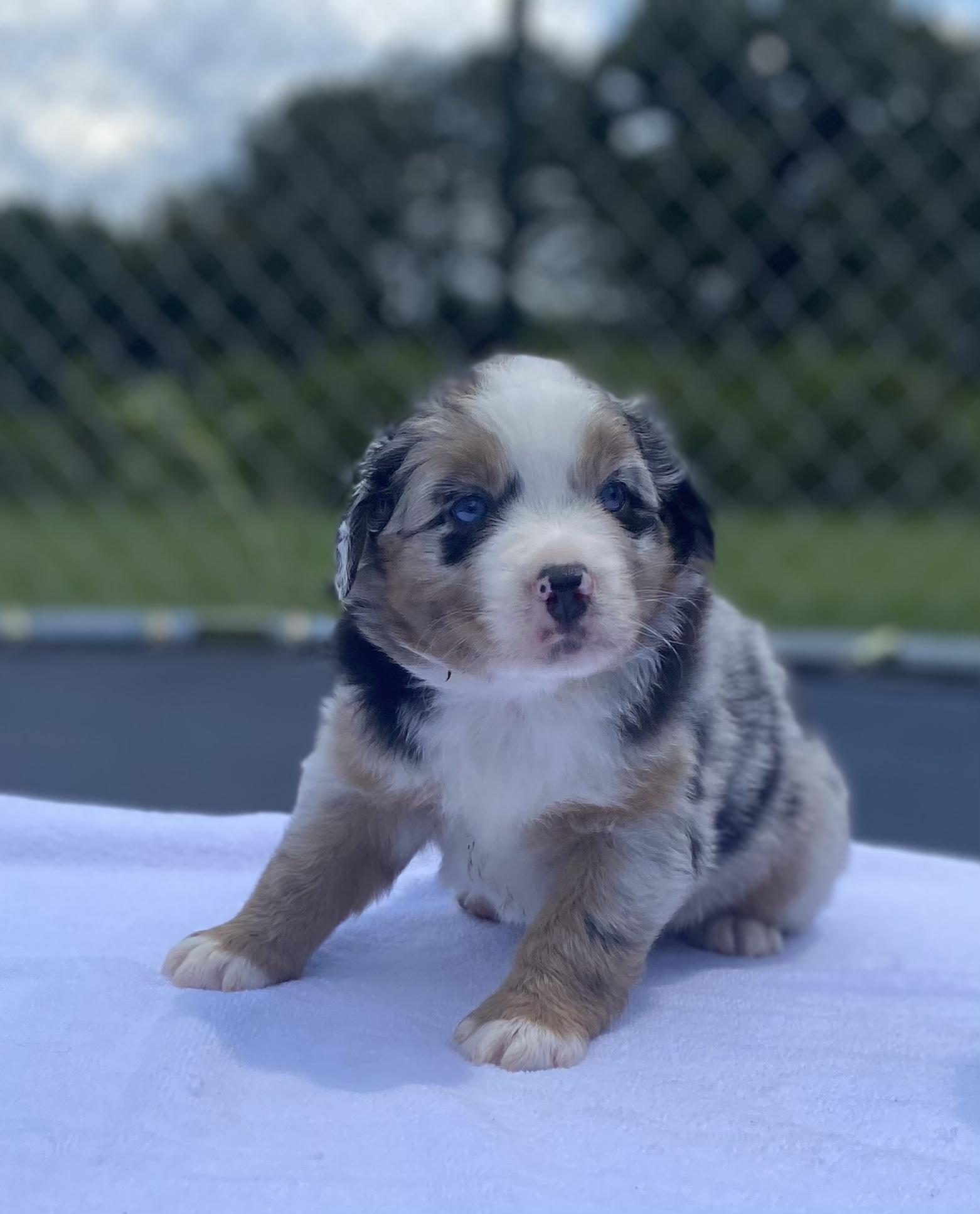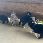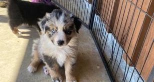 Our puppies include black & white, blue merle, dilute red, black tri-color, and red tri-color. Colors will vary depending on the parent dogs.