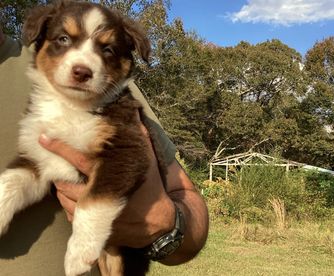 We are so happy we found the Stockton Family farm! Amanda, was so quick to reply to all messages and questions! She sent us pictures every few days once we decided on our puppy! They even met us halfway for no extra charge! Such kind people and so easy to work with! Upon meeting her and her husband, I could tell they do a magnificent job breeding their pups. If we ever decide to get another Aussie, I will be calling her! We are in love with our newest family member! Thank you Amanda!