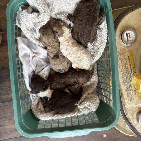 very first aussiedoodle. she is 73% poodle and puppies should be about 80%.
