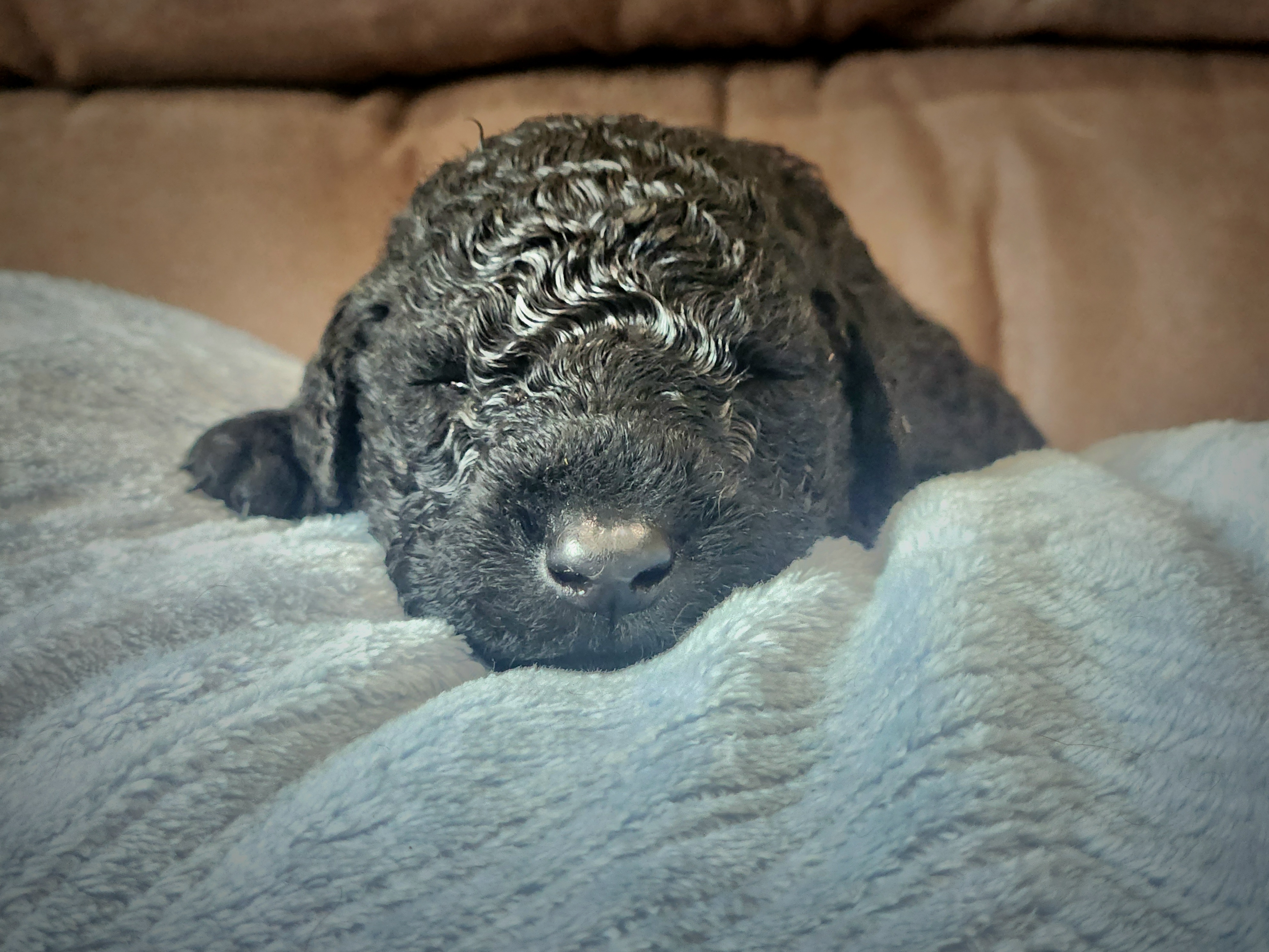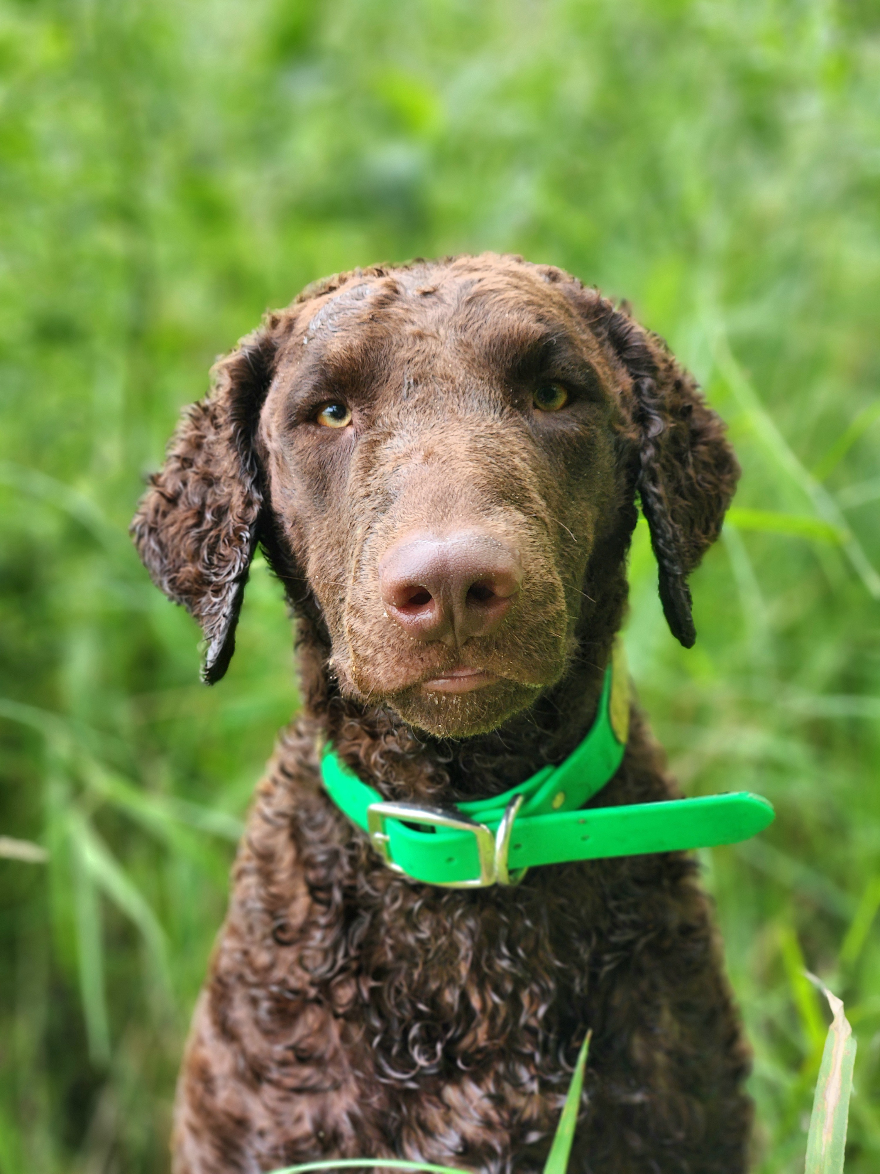 Eider is a male Curly-Coated Retriever. Carefully selected as a great representative of his breed, Kari decided to make him part of their program. Kari has passed Good Dog’s screening process, which involved a review of their breeding practices, environment, and the mental and physical health of their dogs.
