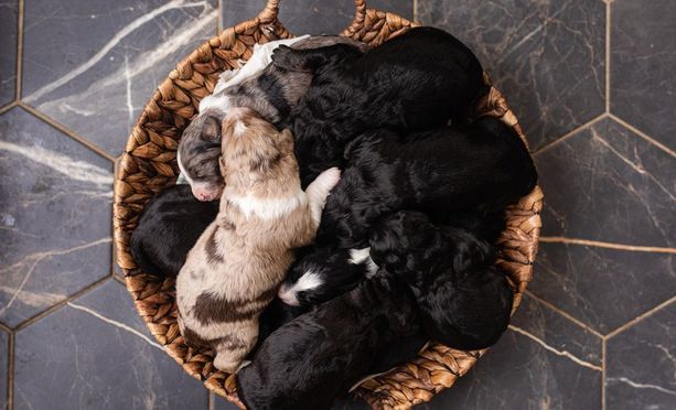 All of our puppies are raised in our home and studio with our 9 children. By the time they are ready for adoption, our puppies will have been handled for over 50 hours by young children making them well-suited for families with kids of all ages. We are very proud to be breeding these incredible dogs. It is important to us that we are breeding versatile, well-rounded, socialized, and healthy pups for our buyers to welcome into their homes and hearts.