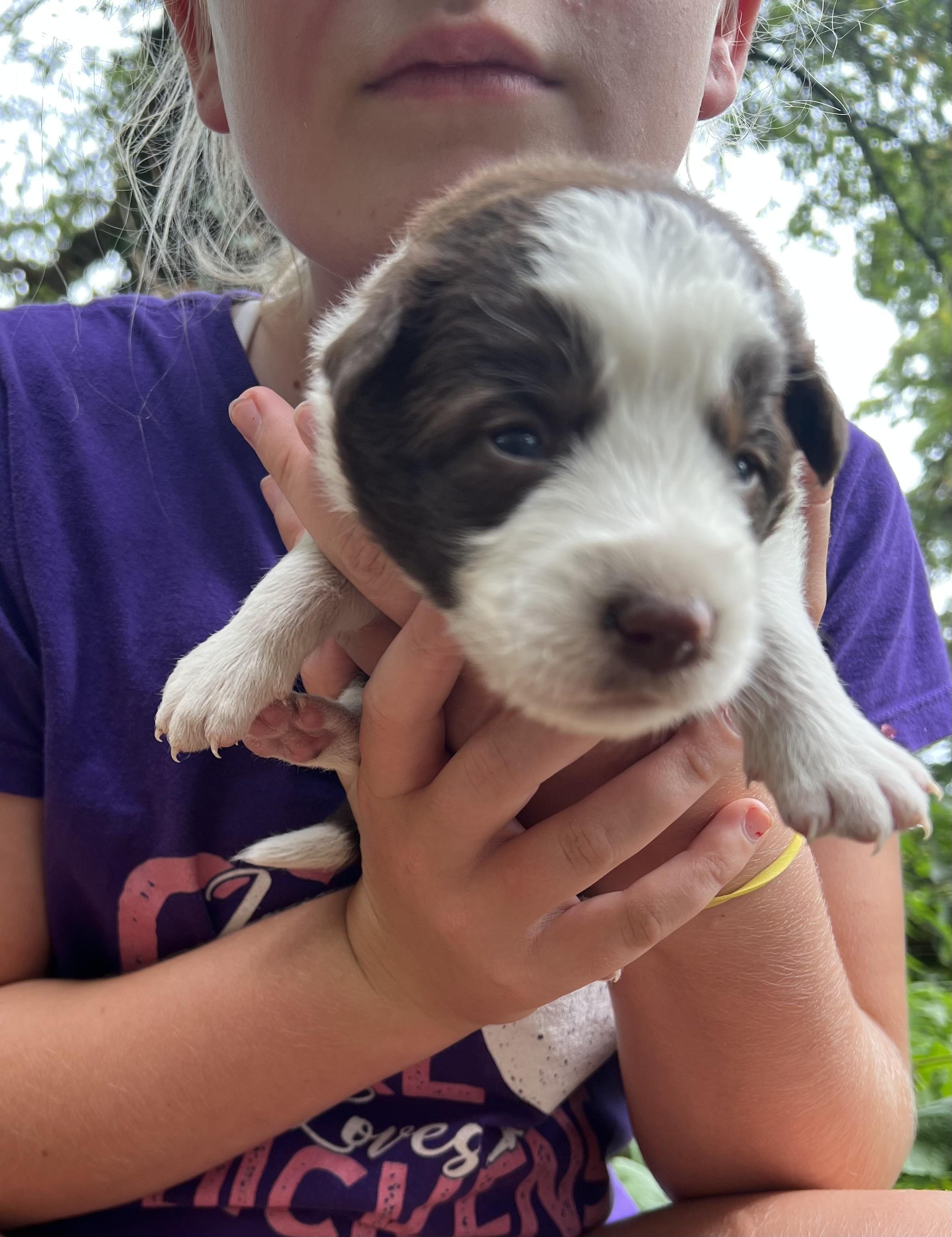 Our puppies include blue merle, red merle, black, and red. Colors will vary depending on the parent dogs.