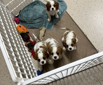 Our puppies include blenheim and tri-color. Colors will vary depending on the parent dogs.