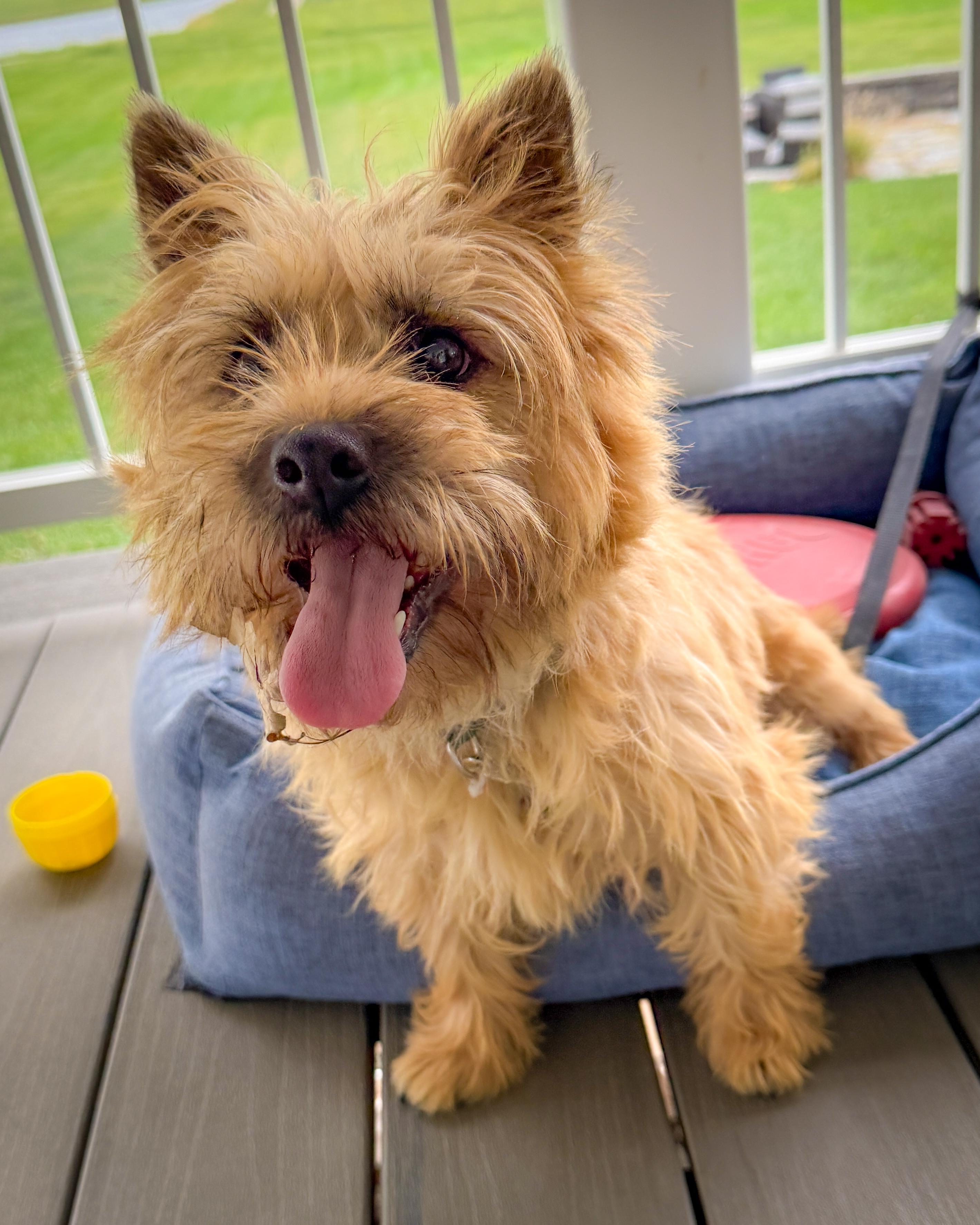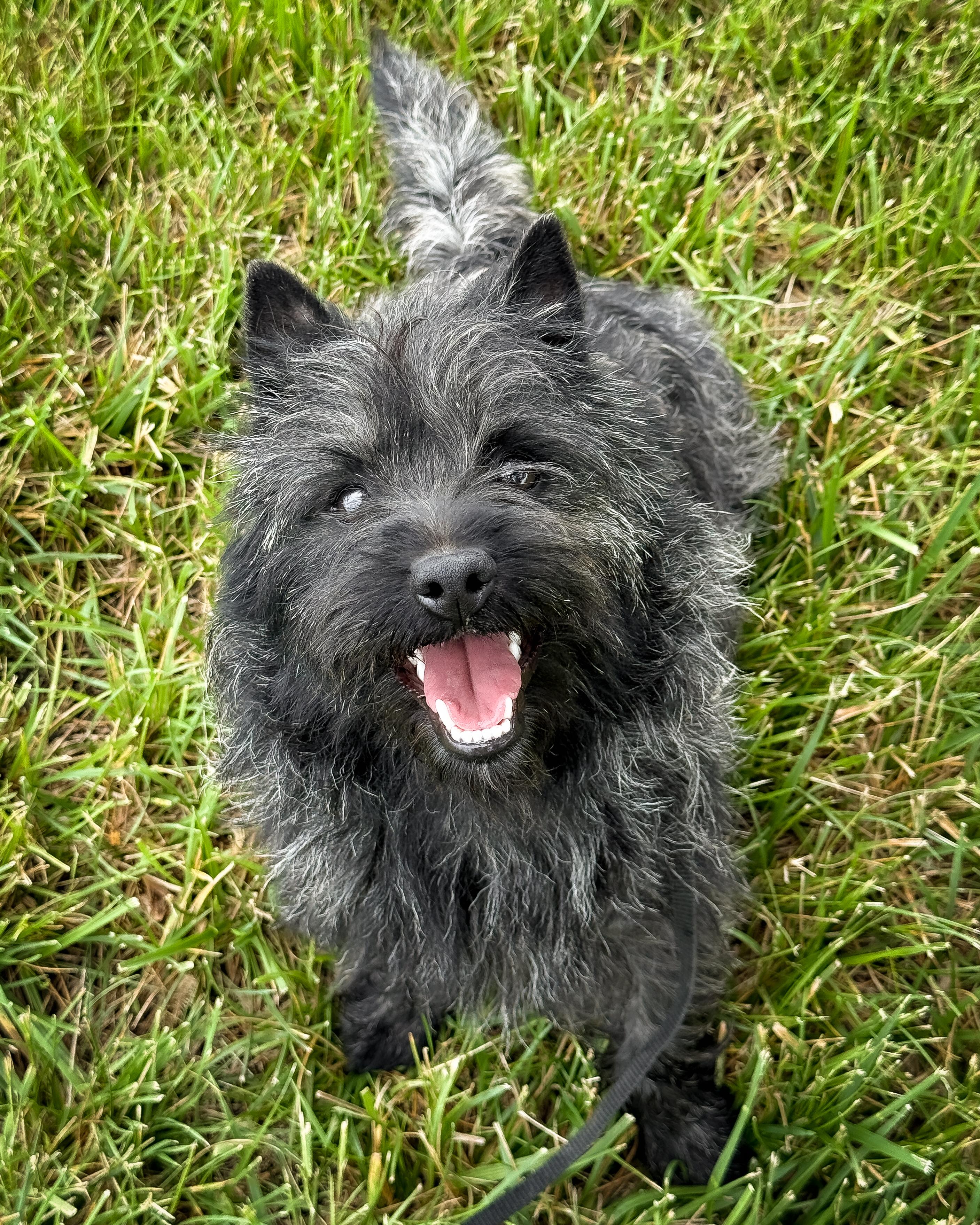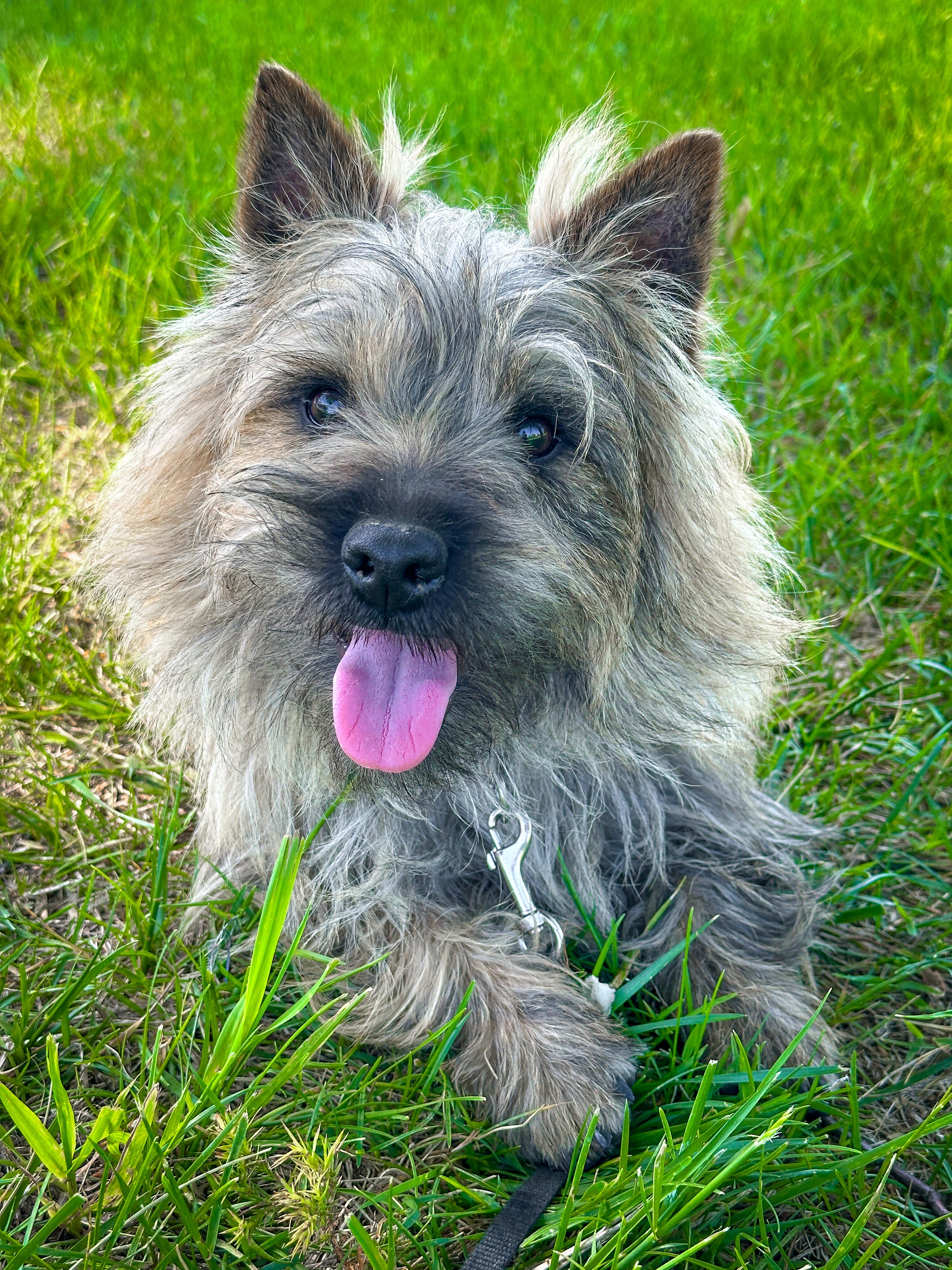 Murphy is a striking Silver Brindle Cairn Terrier with a calm confidence and a heart full of loyalty. She’s a devoted mother who raises her puppies with a perfect balance of gentleness and structure, passing along her steady temperament and classic Cairn intelligence. Murphy is friendly, even-tempered, and always tuned in to the people around her—traits that make her just as much a companion as she is a cornerstone of our breeding program. Whether she’s exploring the yard or quietly relaxing by your side, Murphy brings a peaceful, grounded presence to every room she’s in. We’re proud to have her as part of the Stone & Thistle Cairn Terriers family.