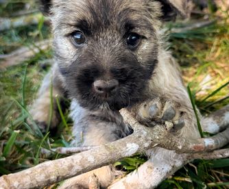 Knox is an exceptional mother with a strong, spirited heart and a warm, watchful nature. True to the Cairn Terrier breed, she’s confident, alert, and always eager to explore—but what makes her truly special is her deep loyalty and affectionate personality. Knox is incredibly attentive to her puppies, balancing her protective instincts with a gentle touch that helps them feel safe and secure as they grow. Around people, she’s outgoing and friendly, always ready to greet you with a wagging tail and a spark of curiosity in her eyes. Knox brings together the best qualities of a classic Cairn Terrier—clever, courageous, and full of character—making her an invaluable part of the Stone & Thistle family and a joy to be around every day!