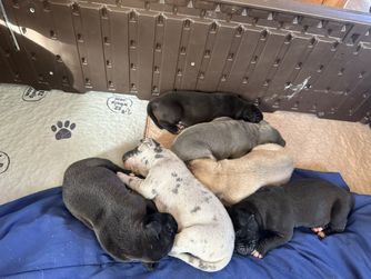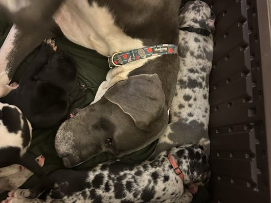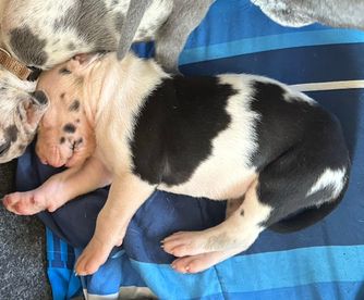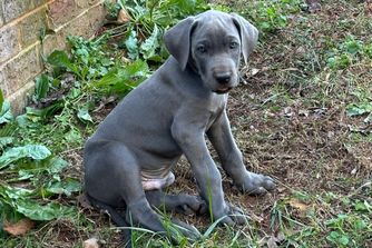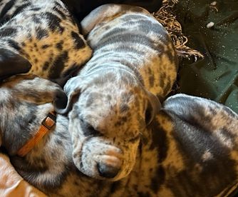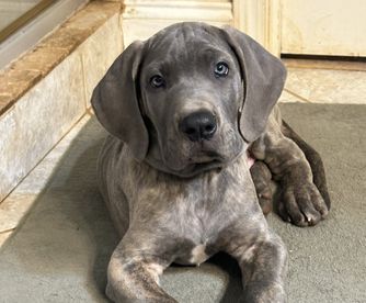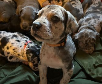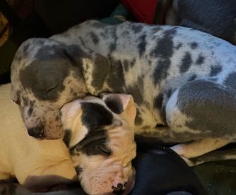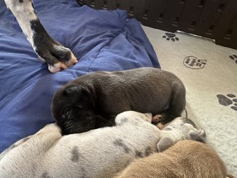 Our Great Dane puppies include mantle merle, blue and white, blue, harlequin, mantle, and merle. Colors will vary depending on the parent dogs.