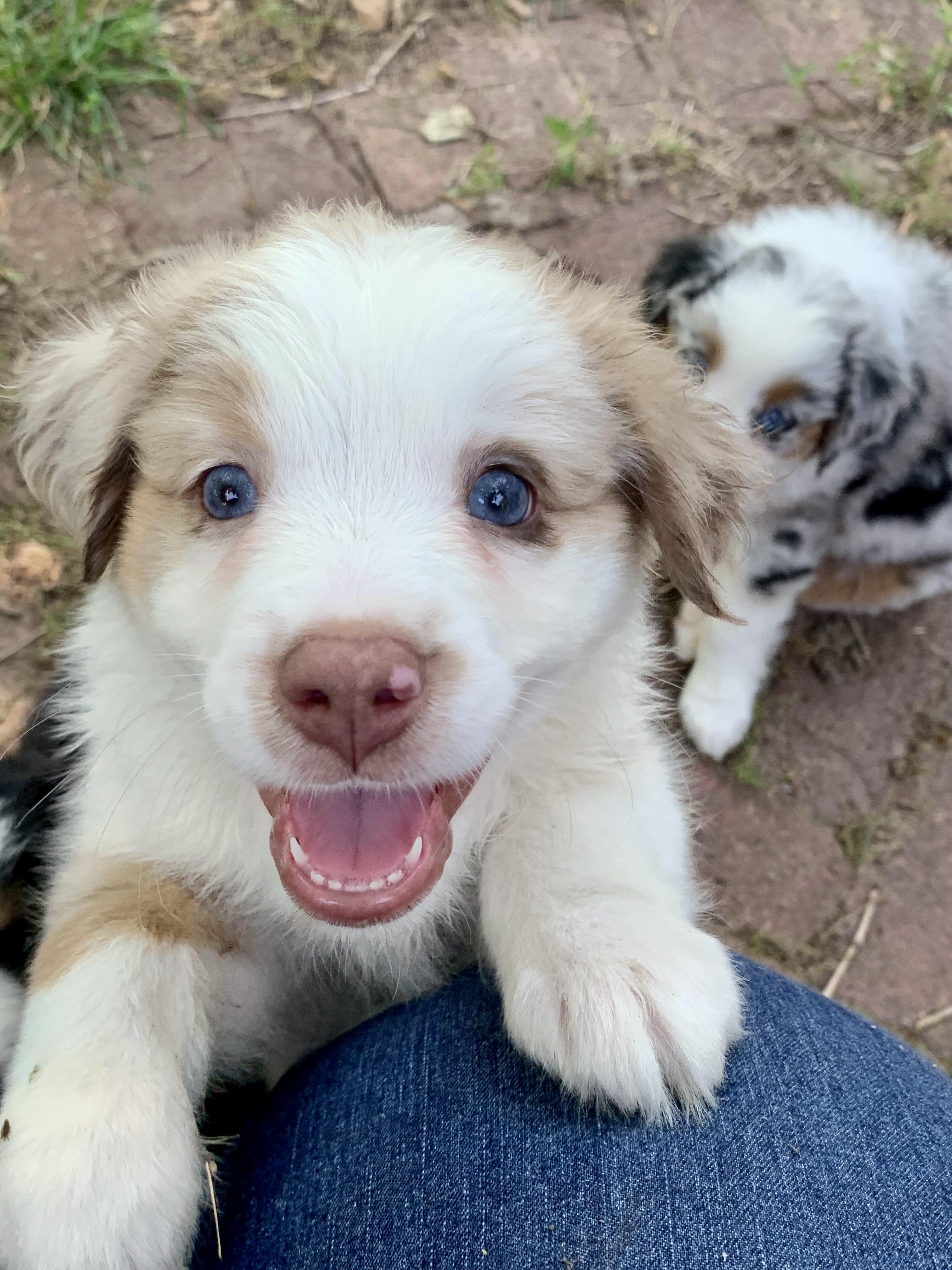 Our Miniature Australian Shepherd puppies include blue merle, black tri, red tri, and red merle. Toy Australian Shepherd puppies include black tri, blue merle, red merle, and red tri. Colors will vary depending on the parent dogs.