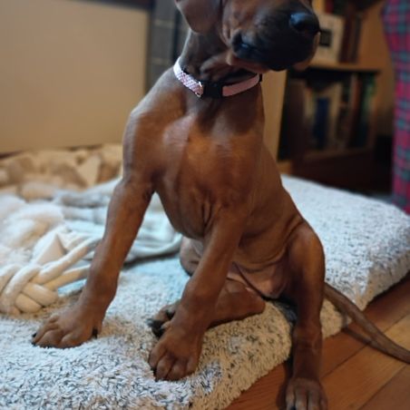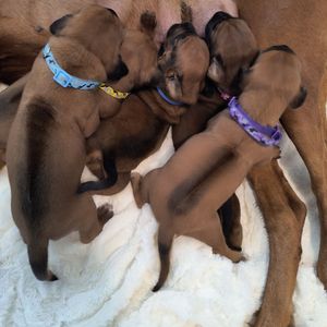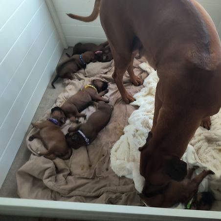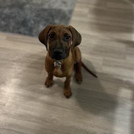 Our experience with Maura was excellent. Her communication was very prompt with quick turnaround. She was extremely helpful throughout the entire process and made it easy for us to pick up the puppy. Her home is where the puppies are and it was very clean but what we loved the most was that the whole Ridgeback gang was there to greet us! We have enjoyed our first few weeks with Wrigley and have received lots of compliments on how beautiful he is. He is adjusting well to his new home, and we look forward to many years with him and the rest of our family dogs. Thank you so much Maura!
