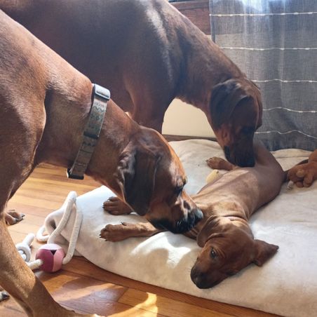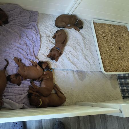 I'm Maura, the breeder behind Stoneridge Ridgebacks located in Kansas City, MO. We breed and raise quality Rhodesian Ridgebacks with a focus on breed standard, health, and temperament. Our dogs are all raised in our home where they are around our family all day. We ensure all of our dogs are well cared for, and dedicate our energy and time to raising and training them.