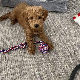 Angelica at Stonewick Poodles was wonderful! We took our healthy, happy pup home at 11 weeks. He was already doing amazing with training and incredibly easy to house train. He's also very comfortable around children and other dogs. Stonewick Poodles is a small breeder, and they truly treat their dogs like family. We wanted a poodle because of (human) allergies. Mostly, we wanted a wonderful pet for our family to love. That's what we got! We couldn't have asked for a better experience with Stonewick Poodles, and we are so very happy with our new family member!