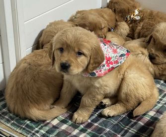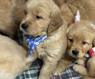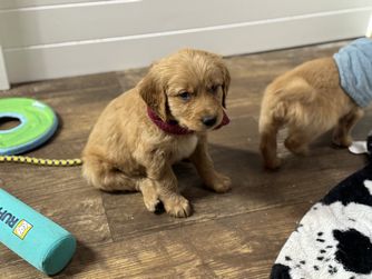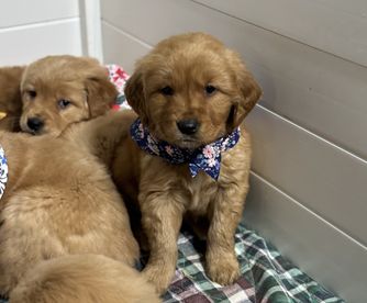 Our Cavalier King Charles Spaniel puppies include blenheim, ruby, black and tan, and tri-color. Golden Retriever puppies include dark golden, golden, and light golden. Colors will vary depending on the parent dogs.