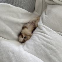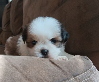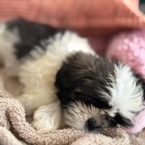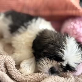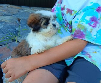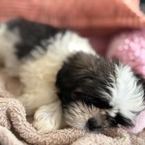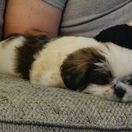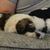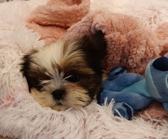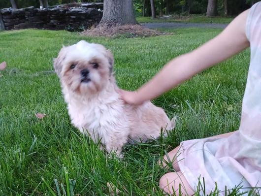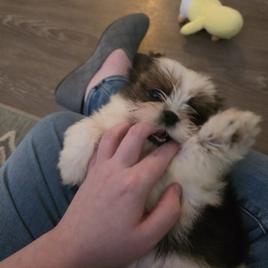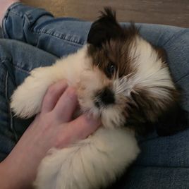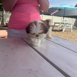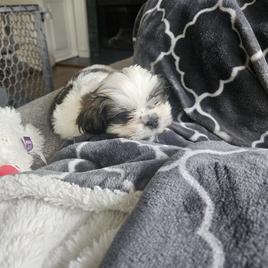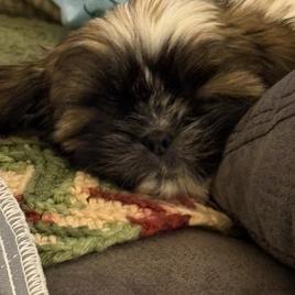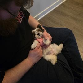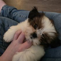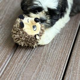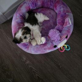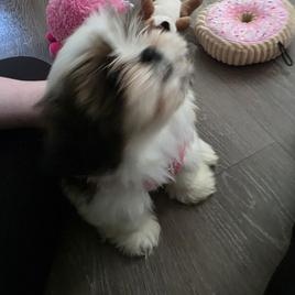 We cannot thank Jackie and her family enough for bringing little Matilda (formerly Lucy) into our lives! She is a fluffy little ball of energy! She learns new commands and tricks very quickly, and while she has her sassy puppy moments, she is such a good girl. Everyone who meets her says she looks like a stuffed animal, and she was extremely popular at the vet's office (where she got a clean bill of health and a new toy). Matilda is already spoiled rotten with tons of toys, 2 beds - a squishmallow unicorn bed & a Hello Kitty bed, and all the love and belly rubs she can get. Favorite nap spot: behind the throw pillows on the couch. If you are looking for an adorable shih tzu puppy to pamper, please get in touch with Jackie! You will not regret it.