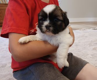 Jackie was great to work with! She was quick to respond with messaging and provided us photos and we even did a WhatsApp video call with her to see our puppy. Our puppy is so well-socialized with adults, kids and other dogs, and she is happy and healthy! We especially liked that both parents were genetically tested. We are so glad that we could work with Jackie and we recommend her highly to anyone who is looking for an adorable Shih tzu puppy!