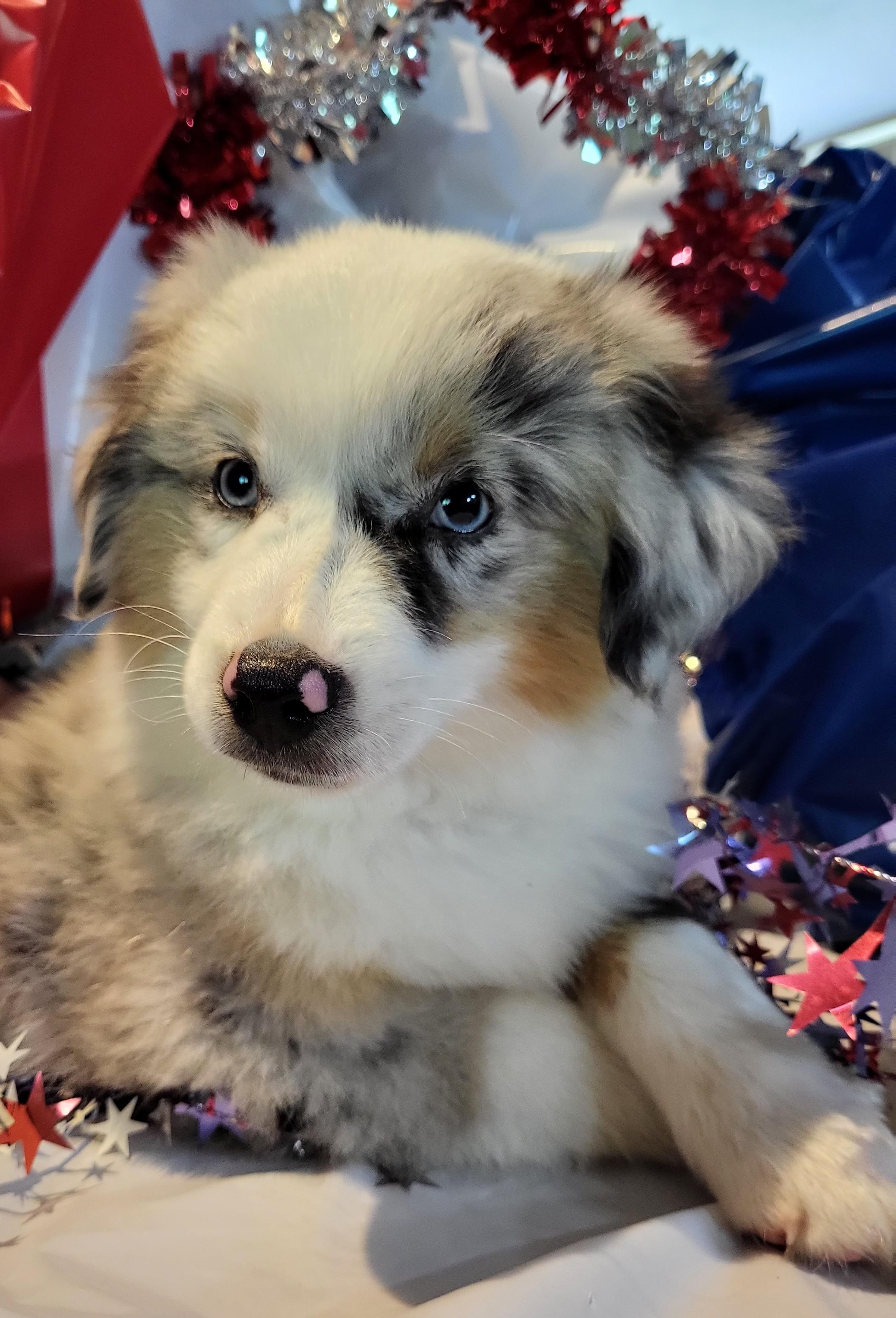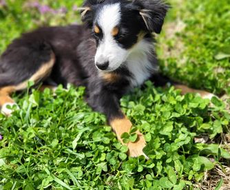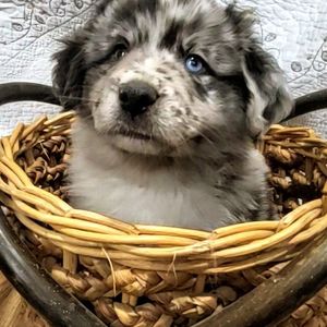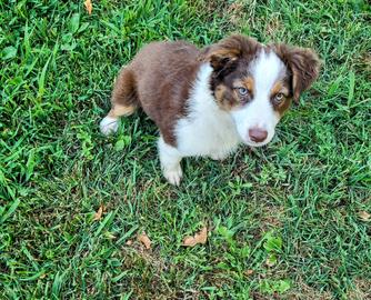 Our Toy Australian Shepherd puppies include black tri and blue merle. Miniature Australian Shepherd puppies include black & white, red & white, blue merle, black tri, red tri, and red merle. Colors will vary depending on the parent dogs.