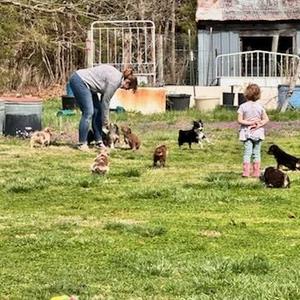This weekend was so fun! On Friday Granite, Clover, Black Jack, and Frankie went with me and the girls to the feed store, they had a great experience and got some attention. Saturday I got 5 out of 10 bathed and then we ran around the yard and practiced recall with puppies getting treats if they sat nicely (almost all of them know this game now) and today I took Nova, Mae, Slate and Bubba to the hardware store, it was also a great experience with some outside attention. We finished off playing in the mud (it rained here) and then a photoshoot with muddy paws included. These pups are just awesome guys!