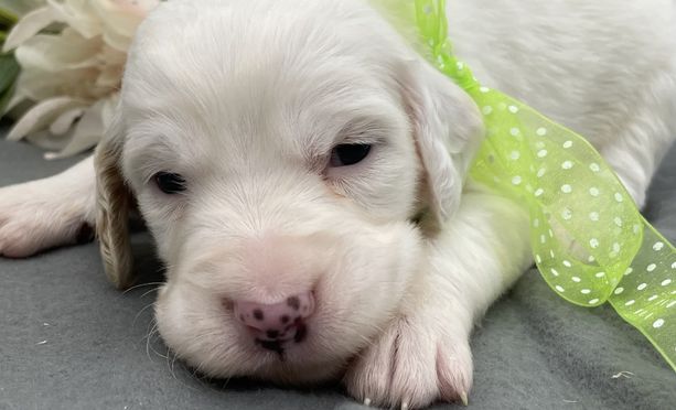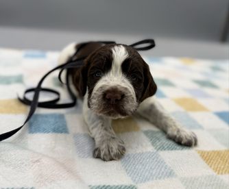 Rosemary is a female English Springer Spaniel. Carefully selected as a great representative of her breed, Nate decided to make her part of their program. Nate has passed Good Dog’s screening process, which involved a review of their breeding practices, environment, and the mental and physical health of their dogs.