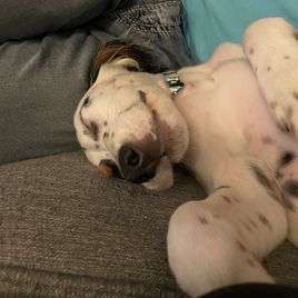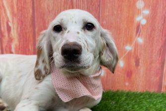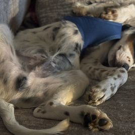 Butters is a female English Setter. Carefully selected as a great representative of her breed, Nate decided to make her part of their program. Nate has passed Good Dog’s screening process, which involved a review of their breeding practices, environment, and the mental and physical health of their dogs.